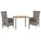 Ensemble à manger de jardin 3 pcs coussins gris résine tresséeCet ensemble de salle à manger de jardin tendance, au design élégant et contemporain, est un excellent choix pour manger ou vous détendre dans votre jardin. Matériau résistant aux intempéries : la résine tressée, également connue sous le nom de rotin poly, résiste aux intempéries et est facile à nettoyer. Elle reste belle à l'extérieur pendant une longue période. Elle offre une excellente qualité, commodité et un aspect esthétique. Cadre robuste : les cadres en acier enduit de poudre rendent l'ensemble de salle à manger d'extérieur robuste et stable pour une utilisation quotidienne à l'extérieur. Dessus de table pratique : le dessus de table robuste est parfait pour placer des repas, des boissons et d'autres objets décoratifs. Conception modulaire : l'ensemble de salle à manger de jardin est flexible et facile à déplacer, vous pouvez donc le combiner avec d'autres segments modulaires dans la boutique en ligne pour créer vos propres configurations d'ensemble de salle à manger de jardin ! Fonction d'inclinaison : les chaises de jardin sont spécialement conçues avec une fonction d'inclinaison afin que vous puissiez régler le dossier selon votre confort. Expérience d'assise confortable : le dossier ajoute un confort d'assise supplémentaire à la chaise de jardin. De plus, les coussins bien rembourrés vous permettent de vous asseoir confortablement. Bon à savoir : Pour faciliter au maximum le montage, chaque produit est livré avec des instructions. Remarque : Pour que vos meubles d'extérieur restent beaux, nous vous recommandons de les protéger avec une housse imperméable. Maximum 110 kg par siège. Soyez conscient du risque de feu ouvert et d'autres sources de forte chaleur à proximité de l'appareil.