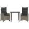Ensemble à manger de jardin 3 pcs coussins gris résine tresséeCet ensemble de salle à manger de jardin est un excellent choix pour les repas en plein air ou pour vous détendre dans le jardin, l'arrière-cour ou le patio. Matériau durable : la résine tressée, également connue sous le nom de poly rotin, est un matériau synthétique solide et nécessitant peu d'entretien qui ressemble au rotin naturel. Il est léger, facile à nettoyer et couramment utilisé pour les meubles d'extérieur en raison de sa durabilité et de ses propriétés de résistance aux intempéries. Dossier réglable : ce siège de jardin est doté d'une poignée. Vous pouvez régler le dossier dans n'importe quelle position en tirant sur la poignée et le remettre rapidement dans sa position initiale. Dessus en verre : le dessus de la table d'extérieur est fabriqué en verre trempé solide et durable, ce qui le rend facile à nettoyer avec un chiffon humide et ajoute une touche d'élégance à votre espace extérieur. Expérience d'assise confortable : ce mobilier d'extérieur, doté de coussins épais, offre une expérience d'assise confortable. Housse amovible et lavable : ces coussins de siège sont dotés de housses amovibles pour un lavage et un entretien faciles. Bon à savoir : Pour que vos meubles d'extérieur restent beaux, nous vous recommandons de les protéger avec une housse imperméable. Maximum 110 kg par siège. Soyez conscient du risque de feux ouverts et d'autres sources de forte chaleur à proximité du produit.