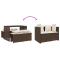 Ensemble à manger de jardin 3 pcs et coussins marron poly rotinCet ensemble de salle à manger de jardin est un excellent choix pour les repas en plein air ou pour vous détendre dans le jardin, dans l'arrière-cour ou sur la terrasse. Matériau durable : la résine tressée, également connue sous le nom de poly rotin, est un matériau synthétique solide et nécessitant peu d'entretien qui ressemble au rotin naturel. Il est léger, facile à nettoyer et couramment utilisé pour les meubles d'extérieur en raison de sa durabilité et de ses propriétés de résistance aux intempéries.Expérience d'assise confortable : ce mobilier d'extérieur, doté de coussins épais, offre une expérience d'assise confortable.Housse amovible et lavable : ces coussins de siège sont dotés de housses amovibles pour un lavage et un entretien faciles.Cadre robuste et stable : le cadre en acier enduit de poudre assure la solidité et la stabilité du meuble de jardin pour une utilisation quotidienne à l'extérieur. Bon à savoir :Pour que vos meubles d'extérieur restent beaux, nous vous recommandons de les protéger avec une housse imperméable. Maximum 110 kg par siège. Soyez conscient du risque de feux ouverts et d'autres sources de forte chaleur à proximité du produit.