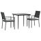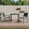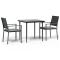 Ensemble à manger de jardin 3 pcs coussins résine tressée acierCet ensemble à manger de jardin, combinant à la fois style et fonctionnalité, est sûrement destiné à être la pièce maîtresse de votre jardin, terrasse et de tout autre espace de vie. Matériau résistant aux intempéries : la résine tressée, également connue sous le nom de rotin poly, résiste aux intempéries et est facile à nettoyer. Elle reste belle à l'extérieur pendant une longue période. Elle offre une excellente qualité, commodité et un aspect esthétique.Cadre robuste et stable : les cadres en acier rendent l'ensemble à manger robuste et stable pour une utilisation quotidienne à l'extérieur.Dessus de table pratique : le plateau lisse de la table à manger est en verre trempé facile à nettoyer avec un chiffon humide. De plus, il offre un excellent support pour contenir vos repas, boissons et autres objets décoratifs.Assise confortable : la chaise de salle à manger est conçue avec des accoudoirs pour vous offrir une expérience d'assise confortable. Le coussin de siège épais et rembourré offre un confort ultime pendant votre temps d'assise. Remarque :Pour que vos meubles d'extérieur restent beaux, nous vous recommandons de les protéger avec une housse imperméable. Maximum 110 kg par siège. Soyez conscient du risque de feu ouvert et d'autres sources de forte chaleur à proximité de l'appareil.
