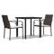 Ensemble à manger de jardin 3 pcs coussins résine tressée acierCet ensemble à manger de jardin, combinant à la fois style et fonctionnalité, est sûrement destiné à être la pièce maîtresse de votre jardin, terrasse et de tout autre espace de vie. Matériau résistant aux intempéries : la résine tressée, également connue sous le nom de rotin poly, résiste aux intempéries et est facile à nettoyer. Elle reste belle à l'extérieur pendant une longue période. Elle offre une excellente qualité, commodité et un aspect esthétique. Cadre robuste et stable : les cadres en acier rendent l'ensemble à manger robuste et stable pour une utilisation quotidienne à l'extérieur. Dessus de table pratique : le plateau lisse de la table à manger est en verre trempé facile à nettoyer avec un chiffon humide. De plus, il offre un excellent support pour contenir vos repas, boissons et autres objets décoratifs. Assise confortable : la chaise de salle à manger est conçue avec des accoudoirs pour vous offrir une expérience d'assise confortable. Le coussin de siège épais et rembourré offre un confort ultime pendant votre temps d'assise. Remarque : Pour que vos meubles d'extérieur restent beaux, nous vous recommandons de les protéger avec une housse imperméable. Maximum 110 kg par siège. Soyez conscient du risque de feux ouverts et d'autres sources de forte chaleur à proximité du produit.
