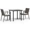 Ensemble à manger de jardin 3 pcs coussins résine tressée acierCet ensemble à manger de jardin, combinant à la fois style et fonctionnalité, est sûrement destiné à être la pièce maîtresse de votre jardin, terrasse et de tout autre espace de vie. Matériau résistant aux intempéries : la résine tressée, également connue sous le nom de rotin poly, résiste aux intempéries et est facile à nettoyer. Elle reste belle à l'extérieur pendant une longue période. Elle offre une excellente qualité, commodité et un aspect esthétique. Cadre robuste et stable : les cadres en acier rendent l'ensemble à manger robuste et stable pour une utilisation quotidienne à l'extérieur. Dessus de table pratique : le plateau lisse de la table à manger est en verre trempé facile à nettoyer avec un chiffon humide. De plus, il offre un excellent support pour contenir vos repas, boissons et autres objets décoratifs. Assise confortable : la chaise de salle à manger est conçue avec des accoudoirs pour vous offrir une expérience d'assise confortable. Le coussin de siège épais et rembourré offre un confort ultime pendant votre temps d'assise. Remarque : Pour que vos meubles d'extérieur restent beaux, nous vous recommandons de les protéger avec une housse imperméable. Maximum 110 kg par siège. Soyez conscient du risque de feux ouverts et d'autres sources de forte chaleur à proximité du produit.