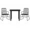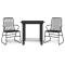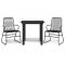 Ensemble à manger de jardin 3 pcs noir rotin PVCProfitez d'un moment de café confortable dans votre espace extérieur avec cet ensemble à manger de jardin ! Cet ensemble à manger est un complément parfait à votre jardin et à votre terrasse, créant une impression durable ! Rotin durable en PVC : le rotin PVC est une option plus solide et plus durable que le rotin naturel. Le PVC est connu pour ses qualités de résistance aux intempéries comme la protection contre les rayons UV et la résistance à l'humidité.Cadre robuste : le cadre en acier de l'ensemble à manger de jardin assure robustesse et stabilité.Dessus de table robuste : le dessus de table robuste de la table à manger est parfait pour placer des repas, des boissons, des vases, des bols de fruits ou d'autres objets décoratifs.Expérience d'assise confortable : avec un dossier et des accoudoirs, le siège de jardin vous permet de vous asseoir confortablement après une longue journée. Remarque :Pour que vos meubles d'extérieur restent beaux, nous vous recommandons de les protéger avec une housse imperméable. Maximum 110 kg par siège.