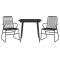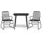 Ensemble à manger de jardin 3 pcs noir rotin PVCProfitez d'un moment de café confortable dans votre espace extérieur avec cet ensemble à manger de jardin ! Cet ensemble à manger est un complément parfait à votre jardin et à votre terrasse, créant une impression durable ! Rotin durable en PVC : le rotin PVC est une option plus solide et plus durable que le rotin naturel. Le PVC est connu pour ses qualités de résistance aux intempéries comme la protection contre les rayons UV et la résistance à l'humidité.Cadre robuste : le cadre en acier de l'ensemble à manger de jardin assure robustesse et stabilité.Dessus de table robuste : le dessus de table robuste de la table à manger est parfait pour placer des repas, des boissons, des vases, des bols de fruits ou d'autres objets décoratifs.Expérience d'assise confortable : avec un dossier et des accoudoirs, le siège de jardin vous permet de vous asseoir confortablement après une longue journée. Remarque :Pour que vos meubles d'extérieur restent beaux, nous vous recommandons de les protéger avec une housse imperméable. Maximum 110 kg par siège.