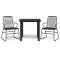 Ensemble à manger de jardin 3 pcs noir rotin PVCDétendez-vous et profitez d'un bon thé de l'après-midi ou de n'importe quel repas avec votre famille et vos amis autour de cet ensemble de salle à manger de jardin ! Rotin durable en PVC : le rotin PVC est une option plus solide et plus durable que le rotin naturel. Le PVC est connu pour ses qualités de résistance aux intempéries comme la protection contre les rayons UV et la résistance à l'humidité. Cadre robuste : les cadres en acier de l'ensemble à manger garantissent robustesse et stabilité. Dessus de table pratique : le dessus de table en verre lisse est facile à nettoyer à l'aide d'un chiffon humide et est parfait pour placer des repas, des boissons et d'autres objets décoratifs. Assise confortable : la chaise à manger est conçue avec un dossier et des accoudoirs pour vous offrir une expérience d'assise confortable. Remarque : Pour que vos meubles d'extérieur restent beaux, nous vous recommandons de les protéger avec une housse imperméable. Maximum 110 kg par siège.