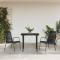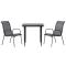 Ensemble à manger de jardin 3 pcs noir textilène et acierProfitez d'un bon repas ou d'un thé l'après-midi dans votre espace extérieur avec cet ensemble de salle à manger de jardin ! Ayant un design élégant, il deviendra le point central de votre jardin et de votre terrasse ! Cadre stable : les fauteuils et la table ont une construction en acier revêtu de poudre, ce qui les rend robustes et stables.Matériau durable : grâce au tissu textilène résistant, ces chaises d'extérieur sont résistantes aux intempéries et faciles à nettoyer.Dessus de table robustes : le dessus de table est en verre trempé, ce qui le rend facile à nettoyer. De plus, le dessus de table est parfait pour placer des collations, des boissons, des vases, des bols de fruits ou d'autres objets décoratifs.Expérience d'assise confortable : conçu avec un dossier et des accoudoirs incurvés, le fauteuil de jardin a une forme plus ergonomique pour un maximum de confort. Bon à savoir :Pour que vos meubles d'extérieur restent beaux, nous vous recommandons de les protéger avec une housse imperméable.