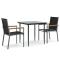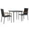 Ensemble à manger de jardin 3 pcs noir textilène et acierDétendez-vous et profitez d'un bon thé de l'après-midi ou de n'importe quel repas avec votre famille et vos amis autour de cet ensemble de salle à manger de jardin ! Matériau durable : le tissu en textilène permet à l'air de circuler librement à travers lui tout en étant résistant aux rayons UV. Le textilène est donc idéal pour les temps chauds. En tant que matériau durable et solide, il est très résistant aux déchirures, aux perforations et aux moisissures. Cadre robuste et stable : les cadres en acier rendent l'ensemble à manger robuste et stable pour une utilisation quotidienne à l'extérieur. Dessus de table pratique : le plateau lisse de la table à manger est en verre trempé facile à nettoyer avec un chiffon humide. De plus, il offre un excellent support pour contenir vos repas, boissons et autres objets décoratifs. Assise confortable : la chaise à manger est conçue avec un dossier et des accoudoirs pour vous offrir une expérience d'assise confortable. Remarque : Pour que vos meubles d'extérieur restent beaux, nous vous recommandons de les protéger avec une housse imperméable. Maximum 110 kg par siège.