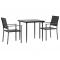 Ensemble à manger de jardin 3 pcs résine tressée acierCet ensemble à manger de jardin, combinant à la fois style et fonctionnalité, est sûrement destiné à être la pièce maîtresse de votre jardin, terrasse et de tout autre espace de vie. Matériau résistant aux intempéries : la résine tressée, également connue sous le nom de rotin poly, résiste aux intempéries et est facile à nettoyer. Elle reste belle à l'extérieur pendant une longue période. Elle offre une excellente qualité, commodité et un aspect esthétique.Cadre robuste et stable : les cadres en acier rendent l'ensemble à manger robuste et stable pour une utilisation quotidienne à l'extérieur.Dessus de table pratique : le plateau lisse de la table à manger est en verre trempé facile à nettoyer avec un chiffon humide. De plus, il offre un excellent support pour contenir vos repas, boissons et autres objets décoratifs.Assise confortable : la chaise à manger est conçue avec des accoudoirs pour vous offrir une expérience d'assise confortable. Remarque :Pour que vos meubles d'extérieur restent beaux, nous vous recommandons de les protéger avec une housse imperméable. Maximum 110 kg par siège.