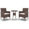 Ensemble à manger de jardin 3pcs Résine tressée MarronCet ensemble de salle à manger de jardin, au design élégant, est un excellent choix pour vos repas ou vos moments de détente sur votre patio ou dans votre jardin. Cadre solide : dotés d'un cadre en acier enduit de poudre recouvert de résine tressée résistante aux intempéries et protégé contre les UV, la table et les chaises sont durables et stables. Chaises confortables : les chaises de jardin sont conçues dans une forme plus ergonomique pour un confort maximal. Des coussins sont inclus pour un soutien supplémentaire. Table pratique : le dessus de table est en verre trempé pour un support solide, facile à nettoyer et à entretenir. Remarque : Afin de prolonger la durée de vie de votre mobilier d'extérieur, nous vous recommandons de le protéger avec une housse imperméable. Maximum 110 kg par siège. Soyez conscient du risque de feu ouvert et d'autres sources de forte chaleur à proximité de l'appareil.