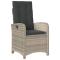 Ensemble à manger de jardin 3pcs coussins gris clair poly rotinCet ensemble de salle à manger de jardin est un excellent choix pour les repas en plein air ou pour vous détendre dans le jardin, dans l'arrière-cour ou sur la terrasse. Matériau durable : la résine tressée, également connue sous le nom de poly rotin, est un matériau synthétique solide et nécessitant peu d'entretien qui ressemble au rotin naturel. Il est léger, facile à nettoyer et couramment utilisé pour les meubles d'extérieur en raison de sa durabilité et de ses propriétés de résistance aux intempéries. Dossier réglable : ce siège de jardin est doté d'une poignée. Vous pouvez régler le dossier dans n'importe quelle position en tirant sur la poignée et le remettre rapidement dans sa position initiale. Expérience d'assise confortable : ce mobilier d'extérieur, doté de coussins épais, offre une expérience d'assise confortable. Housse amovible et lavable : ces coussins de siège sont dotés de housses amovibles pour un lavage et un entretien faciles. Les coussins de dossier ont un rabat à l'arrière pour une fixation facile aux dossiers. Dessus en verre : le dessus de la table d'extérieur est fabriqué en verre trempé solide et durable, ce qui le rend facile à nettoyer avec un chiffon humide et ajoute une touche d'élégance à votre espace extérieur. Bon à savoir : Pour que vos meubles d'extérieur restent beaux, nous vous recommandons de les protéger avec une housse imperméable. Maximum 110 kg par siège. Soyez conscient du risque de feux ouverts et d'autres sources de forte chaleur à proximité du produit.