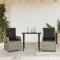 Ensemble à manger de jardin 3pcs coussins gris clair poly rotinCet ensemble de salle à manger de jardin est un excellent choix pour les repas en plein air ou pour vous détendre dans le jardin, dans l'arrière-cour ou sur la terrasse. Matériau durable : la résine tressée, également connue sous le nom de poly rotin, est un matériau synthétique solide et nécessitant peu d'entretien qui ressemble au rotin naturel. Il est léger, facile à nettoyer et couramment utilisé pour les meubles d'extérieur en raison de sa durabilité et de ses propriétés de résistance aux intempéries. Dossier réglable : ce siège de jardin est doté d'une poignée. Vous pouvez régler le dossier dans n'importe quelle position en tirant sur la poignée et le remettre rapidement dans sa position initiale. Expérience d'assise confortable : ce mobilier d'extérieur, doté de coussins épais, offre une expérience d'assise confortable. Housse amovible et lavable : le coussin de siège est doté d'une housse amovible pour un lavage et un entretien faciles. Dessus en verre : le dessus de la table d'extérieur est fabriqué en verre trempé solide et durable, ce qui le rend facile à nettoyer avec un chiffon humide et ajoute une touche d'élégance à votre espace extérieur. Bon à savoir : Pour que vos meubles d'extérieur restent beaux, nous vous recommandons de les protéger avec une housse imperméable. Maximum 110 kg par siège. Soyez conscient du risque de feu ouvert et d'autres sources de forte chaleur à proximité de l'appareil.