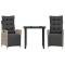 Ensemble à manger de jardin 3pcs coussins gris clair poly rotinCet ensemble de salle à manger de jardin est un excellent choix pour les repas en plein air ou pour vous détendre dans le jardin, l'arrière-cour ou le patio. Matériau durable : la résine tressée, également connue sous le nom de poly rotin, est un matériau synthétique solide et nécessitant peu d'entretien qui ressemble au rotin naturel. Il est léger, facile à nettoyer et couramment utilisé pour les meubles d'extérieur en raison de sa durabilité et de ses propriétés de résistance aux intempéries. Dossier et repose-pied réglables : ce siège de jardin est doté d'une poignée. Vous pouvez régler le dossier et le repose-pied dans n'importe quelle position en tirant sur la poignée, et les remettre rapidement dans leur position initiale. Expérience d'assise confortable : ce mobilier d'extérieur, doté de coussins épais, offre une expérience d'assise confortable. Housse amovible et lavable : ces coussins de siège sont dotés de housses amovibles pour un lavage et un entretien faciles. Les coussins de dossier ont un rabat à l'arrière pour une fixation facile aux dossiers. Dessus en verre : le dessus de la table d'extérieur est fabriqué en verre trempé solide et durable, ce qui le rend facile à nettoyer avec un chiffon humide et ajoute une touche d'élégance à votre espace extérieur. Bon à savoir : Pour que vos meubles d'extérieur restent beaux, nous vous recommandons de les protéger avec une housse imperméable. Maximum 110 kg par siège. Soyez conscient du risque de feux ouverts et d'autres sources de forte chaleur à proximité du produit.