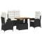 Ensemble à manger de jardin 4 pcs avec coussins noirCet ensemble de salle à manger de jardin est un excellent choix pour les repas en plein air ou pour vous détendre dans le jardin, dans l'arrière-cour ou sur la terrasse. Matériau durable : la résine tressée, également connue sous le nom de poly rotin, est un matériau synthétique solide et nécessitant peu d'entretien qui ressemble au rotin naturel. Il est léger, facile à nettoyer et couramment utilisé pour les meubles d'extérieur en raison de sa durabilité et de ses propriétés de résistance aux intempéries. Dossier réglable : ce siège de jardin est doté d'une poignée. Vous pouvez régler le dossier dans n'importe quelle position en tirant sur la poignée et le remettre rapidement dans sa position initiale. Dessus de table réglable : le dessus de table peut être soulevé pour rendre la table plus haute, ce qui transforme la table d'extérieur d'une table basse à une table de salle à manger. Elle est parfaite pour recevoir des invités ou prendre des repas à l'extérieur. Housse amovible et lavable : ces coussins de siège sont dotés de housses amovibles pour un lavage et un entretien faciles. Les coussins de dossier ont un rabat à l'arrière pour une fixation facile aux dossiers. Expérience d'assise confortable : ce mobilier d'extérieur, doté de coussins épais, offre une expérience d'assise confortable. Bon à savoir : Pour que vos meubles d'extérieur restent beaux, nous vous recommandons de les protéger avec une housse imperméable. Maximum 110 kg par siège. Soyez conscient du risque de feu ouvert et d'autres sources de forte chaleur à proximité de l'appareil.