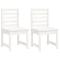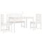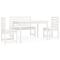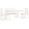 Ensemble à manger de jardin 4 pcs blanc bois massif de pinCet ensemble à manger de jardin classique en bois est parfait pour une utilisation à l'extérieur et est conçu pour être le point central de votre jardin, terrasse ou patio, etc. Bois de pin massif : l'ensemble à manger est fabriqué en bois de pin massif. Le bois de pin massif est un matériau naturel magnifique. Le bois de pin a un grain droit et les noeuds donnent au matériau son aspect caractéristique et rustique. Dessus de table pratique : cette table à manger vous offre un dessus de table solide. Vous pouvez placer vos collations, boissons et n'importe laquelle de vos décorations préférées. Expérience d'assise confortable : l'assise et le dossier à lattes du siège de jardin offrent un excellent soutien. Nombreuses applications : l'ensemble à manger d'extérieur au design simple et intemporel convient aux balcons, jardins, terrasses, etc. Remarque : Pour que vos meubles d'extérieur restent beaux, nous vous recommandons de les protéger avec une housse imperméable. Maximum 110 kg par siège.
