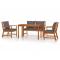 Ensemble à manger de jardin 4 pcs coussins Bois acaciaAvec son design intemporel, cet ensemble de salle à manger de jardin en bois avec coussins ajoute une touche de charme rustique à votre patio, terrasse ou jardin. Matériau durable : le bois d'acacia massif est un matériau naturel magnifique. Le bois d'acacia un bois dur tropical, qui est dense, robuste et durable. Cadre stable : le cadre en bois de l'ensemble de salle à manger garantit robustesse et stabilité. Table pratique : la table offre un espace pour les repas, les boissons et autres objets décoratifs. Conception modulaire : chaque pièce est facile à déplacer, ce qui vous permet de créer facilement différents agencements adaptés à vos besoins. Vous pouvez également trouver d'autres meubles sectionnels avec le même design et le même style dans notre boutique en ligne pour arranger vos propres modèles de meubles. Expérience de siège confortable : avec les coussins de siège et de dossier bien rembourrés, l'ensemble de salle à manger d'extérieur est très confortable. Bon à savoir : Pour faciliter au maximum le montage, chaque produit est livré avec des instructions. Remarque : Pour que vos meubles d'extérieur restent beaux, nous vous recommandons de les protéger avec une housse imperméable. La table est plus basse que les tables à manger habituelles, et elle est particulièrement adaptée pour être combinée avec des ensembles de canapés de jardin. Maximum 110 kg par siège. Soyez conscient du risque de feu ouvert et d'autres sources de forte chaleur à proximité de l'appareil.