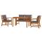Ensemble à manger de jardin 4 pcs coussins Bois acaciaAvec son design intemporel, cet ensemble de salle à manger de jardin en bois avec coussins ajoute une touche de charme rustique à votre patio, terrasse ou jardin. Matériau durable : le bois d'acacia massif est un matériau naturel magnifique. Le bois d'acacia un bois dur tropical, qui est dense, robuste et durable. Cadre stable : le cadre en bois de l'ensemble de salle à manger garantit robustesse et stabilité. Table pratique : la table offre un espace pour les repas, les boissons et autres objets décoratifs. Conception modulaire : chaque pièce est facile à déplacer, ce qui vous permet de créer facilement différents agencements adaptés à vos besoins. Vous pouvez également trouver d'autres meubles sectionnels avec le même design et le même style dans notre boutique en ligne pour arranger vos propres modèles de meubles. Expérience de siège confortable : avec les coussins de siège et de dossier bien rembourrés, l'ensemble de salle à manger d'extérieur est très confortable. Bon à savoir : Pour faciliter au maximum le montage, chaque produit est livré avec des instructions. Remarque : Pour que vos meubles d'extérieur restent beaux, nous vous recommandons de les protéger avec une housse imperméable. La table est plus basse que les tables à manger habituelles, et elle est particulièrement adaptée pour être combinée avec des ensembles de canapés de jardin. Maximum 110 kg par siège. Soyez conscient du risque de feu ouvert et d'autres sources de forte chaleur à proximité de l'appareil. ,