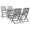 Ensemble à manger de jardin 5 pcs Bois d'acacia massif GrisCet ensemble de salle à manger de jardin, pratique mais élégant, convient parfaitement à une utilisation extérieure et constitue un point central attrayant pour votre jardin, terrasse ou patio. La table et les chaises sont en bois d'acacia massif avec un lavage gris. Par conséquent, elles sont résistantes aux intempéries, durables et faciles à nettoyer avec un chiffon humide. En raison de la structure en bois robuste, cet ensemble est très stable et sûr. Il vous procurera confort et grande commodité pour passer du temps avec votre famille et vos amis. De plus, la table et les chaises peuvent être facilement repliées pour un rangement et un transport faciles lorsqu'elles ne sont pas utilisées. La livraison comprend 1 table à manger et 4 chaises de salle à manger. Maximum 110 kg par siège.