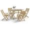 Ensemble à manger de jardin 5 pcs Bois d'acacia solideProfitez d'un bon repas ou d'un thé l'après-midi dans votre espace extérieur avec cet ensemble à manger de jardin en bois ! Bois d'acacia massif : l'ensemble de salle à manger d'extérieur est fabriqué en bois d'acacia massif pour plus de robustesse et de stabilité. Le bois d'acacia massif est un beau matériau naturel. Le bois d'acacia a un grain droit et les noeuds donnent au matériau son aspect caractéristique et rustique.Une expérience d'assise confortable : dotée d'un dossier, la chaise d'extérieur vous offre un confort optimal.Design à lattes : le design à lattes de l'ensemble de salle à manger de terrasse empêche l'accumulation de l'eau, ce qui permet de garder le siège au sec et d'éviter un pourrissement inutile.Dessus de table robuste : la table d'extérieur offre un excellent support pour accueillir vos boissons, collations, corbeilles de fruits et vos décorations préférées.Design pliable : la table et les chaises de salle à manger d'extérieur peuvent être facilement repliées lorsqu'elles ne sont pas utilisées pour faciliter le rangement et le transport. Bon à savoir :Pour que vos meubles d'extérieur restent beaux, nous vous recommandons de les protéger avec une housse imperméable. Maximum 110 kg par siège.