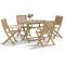 Ensemble à manger de jardin 5 pcs Bois d'acacia solideProfitez d'un bon repas ou d'un thé l'après-midi dans votre espace extérieur avec cet ensemble à manger de jardin en bois ! Bois d'acacia massif : l'ensemble de salle à manger d'extérieur est fabriqué en bois d'acacia massif pour plus de robustesse et de stabilité. Le bois d'acacia massif est un beau matériau naturel. Le bois d'acacia a un grain droit et les noeuds donnent au matériau son aspect caractéristique et rustique.Une expérience d'assise confortable : dotée d'accoudoirs et d'un dossier, la chaise d'extérieur vous offre un confort optimal.Design à lattes : le design à lattes de l'ensemble de salle à manger de terrasse empêche l'accumulation de l'eau, ce qui permet de garder le siège au sec et d'éviter un pourrissement inutile.Dessus de table robuste : la table d'extérieur offre un excellent support pour accueillir vos boissons, collations, corbeilles de fruits et vos décorations préférées.Design pliable : la table et les chaises de salle à manger d'extérieur peuvent être facilement repliées lorsqu'elles ne sont pas utilisées pour faciliter le rangement et le transport. Bon à savoir :Pour que vos meubles d'extérieur restent beaux, nous vous recommandons de les protéger avec une housse imperméable. Maximum 110 kg par siège.