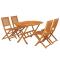 Ensemble à manger de jardin 5 pcs Bois d'acacia solideCréez une esthétique convaincante et uniforme dans votre espace extérieur avec cet ensemble de salle à manger de jardin en bois ! Cet ensemble de salle à manger d'extérieur est fabriqué en bois d'acacia massif, un bois dur tropical, qui est résistant aux intempéries et durable pour des années d'utilisation. La surface finie à l'huile est facile à nettoyer avec un chiffon humide. De plus, les chaises et la table de patio peuvent être pliées dans un format compact pour économiser de l'espace lorsqu'elles ne sont pas utilisées. Remarque : afin de prolonger la durée de vie des meubles d'extérieur, nous vous recommandons de les protéger avec une housse imperméable. Maximum 110 kg par siège.