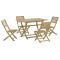 Ensemble à manger de jardin 5 pcs Bois d'acacia solideProfitez d'un bon repas ou d'un thé l'après-midi dans votre espace extérieur avec cet ensemble à manger de jardin en bois ! Bois d'acacia massif : l'ensemble de salle à manger d'extérieur est fabriqué en bois d'acacia massif pour plus de robustesse et de stabilité. Le bois d'acacia massif est un beau matériau naturel. Le bois d'acacia a un grain droit et les noeuds donnent au matériau son aspect caractéristique et rustique.Une expérience d'assise confortable : dotée d'un dossier, la chaise d'extérieur vous offre un confort optimal.Design à lattes : le design à lattes de l'ensemble de salle à manger de terrasse empêche l'accumulation de l'eau, ce qui permet de garder le siège au sec et d'éviter un pourrissement inutile.Dessus de table robuste : la table d'extérieur offre un excellent support pour accueillir vos boissons, collations, corbeilles de fruits et vos décorations préférées.Design pliable : la table et les chaises de salle à manger d'extérieur peuvent être facilement repliées lorsqu'elles ne sont pas utilisées pour faciliter le rangement et le transport. Bon à savoir :Pour que vos meubles d'extérieur restent beaux, nous vous recommandons de les protéger avec une housse imperméable. Maximum 110 kg par siège.