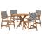Ensemble à manger de jardin 5 pcs Bois d'acacia solideProfitez d'un bon repas ou d'un thé l'après-midi dans votre espace extérieur avec cet ensemble à manger de jardin en bois ! Bois d'acacia massif : l'ensemble de salle à manger d'extérieur est fabriqué en bois d'acacia massif pour plus de robustesse et de stabilité. Le bois d'acacia massif est un beau matériau naturel. Le bois d'acacia a un grain droit et les noeuds donnent au matériau son aspect caractéristique et rustique.Matériau durable : la résine tressée, également connue sous le nom de poly rotin, est un matériau synthétique solide et nécessitant peu d'entretien qui ressemble au rotin naturel. Il est léger, facile à nettoyer et couramment utilisé pour les meubles d'extérieur en raison de sa durabilité et de ses propriétés de résistance aux intempéries.Une expérience d'assise confortable : dotée d'un dossier, la chaise d'extérieur vous offre un confort optimal.Design à lattes : le design à lattes de l'ensemble de salle à manger de terrasse empêche l'accumulation de l'eau, ce qui permet de garder le siège au sec et d'éviter un pourrissement inutile.Dessus de table robuste : la table d'extérieur offre un excellent support pour accueillir vos boissons, collations, corbeilles de fruits et vos décorations préférées. Bon à savoir :Pour que vos meubles d'extérieur restent beaux, nous vous recommandons de les protéger avec une housse imperméable. Maximum 110 kg par siège.
