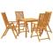 Ensemble à manger de jardin 5 pcs Bois d'acacia solideCet ensemble de salle à manger de jardin en bois est un excellent choix pour les repas en plein air ou tout simplement pour se détendre dans le jardin, la cour arrière ou la terrasse. Bois d'acacia massif : le bois d'acacia massif est un matériau naturel magnifique. Le bois d'acacia un bois dur tropical, qui est dense, robuste et durable.Fonction pliable : les chaises de salle à manger d'extérieur peuvent être repliées pour gagner de la place lorsqu'elles ne sont pas utilisées.Ventilé : cet ensemble à manger de patio avec une conception à lattes peut permettre l'écoulement de l'eau, qui n'est pas facile à pourrir et a une longue durée de vie.Dessus stable : le dessus stable de la table à manger est idéal pour placer votre boisson ou toute autre nécessité dont vous avez besoin à portée de main.Surface facile à nettoyer : la surface à finition à l'huile rend ce mobilier à manger de jardin facile à nettoyer avec un chiffon humide. Bon à savoir :Pour que vos meubles d'extérieur restent beaux, nous vous recommandons de les protéger avec une housse imperméable. Maximum 110 kg par siège.