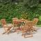 Ensemble à manger de jardin 5 pcs Bois d'acacia solideCet ensemble de salle à manger de jardin en bois, au design élégant et contemporain, sera un excellent choix pour manger ou vous détendre dans le jardin. Bois d'acacia massif : le bois d'acacia massif est un matériau naturel magnifique. Le bois d'acacia un bois dur tropical, qui est dense, robuste et durable. Fonction pliable : le mobilier de jardin peut être replié pour gagner de la place lorsqu'il n'est pas utilisé. Dessus de table robuste : cette table de salle à manger vous offre un dessus de table solide. Vous pouvez placer vos collations, boissons et n'importe laquelle de vos décorations préférées. Surface facile à nettoyer : la surface à finition à l'huile rend l'ensemble de meubles de jardin facile à nettoyer avec un chiffon humide. Bon à savoir : Pour faciliter au maximum le montage, chaque produit est livré avec des instructions. Remarque : Pour que vos meubles d'extérieur restent beaux, nous vous recommandons de les protéger avec une housse imperméable. Maximum 110 kg par siège.