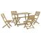 Ensemble à manger de jardin 5 pcs Bois d'acacia solideProfitez d'un bon repas ou d'un thé l'après-midi dans votre espace extérieur avec cet ensemble à manger de jardin en bois ! Bois d'acacia massif : l'ensemble de salle à manger d'extérieur est fabriqué en bois d'acacia massif pour plus de robustesse et de stabilité. Le bois d'acacia massif est un beau matériau naturel. Le bois d'acacia a un grain droit et les noeuds donnent au matériau son aspect caractéristique et rustique. Une expérience d'assise confortable : dotée d'un dossier, la chaise d'extérieur vous offre un confort optimal. Design à lattes : le design à lattes de l'ensemble de salle à manger de terrasse empêche l'accumulation de l'eau, ce qui permet de garder le siège au sec et d'éviter un pourrissement inutile. Dessus de table robuste : la table d'extérieur offre un excellent support pour accueillir vos boissons, collations, corbeilles de fruits et vos décorations préférées. Design pliable : la table et les chaises de salle à manger d'extérieur peuvent être facilement repliées lorsqu'elles ne sont pas utilisées pour faciliter le rangement et le transport. Bon à savoir : Pour que vos meubles d'extérieur restent beaux, nous vous recommandons de les protéger avec une housse imperméable. Maximum 110 kg par siège.