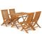 Ensemble à manger de jardin 5 pcs Bois de teck massifCet ensemble de salle à manger de jardin en bois tendance est parfait pour votre camping en plein air ou le pique-nique. Cet ensemble est sûrement pratique lorsque de l'espace supplémentaire est nécessaire. Fabriquée en bois dur de teck extrêmement durable, cette pièce de meuble en teck a été chevronnée, séchée au four puis finement poncée pour lui donner un aspect très lisse. Le bois de teck est connu pour sa résistance exceptionnelle aux intempéries, ce qui le rend bien plus adapté aux meubles de jardin que tout autre type de bois. Le bois de teck est le choix idéal si vous souhaitez acheter une pièce de meubles de jardin durable. De plus, ils résistent également à l'humidité et aux insectes. L'ensemble est appliqué avec une belle finition pour donner au bois une couleur chaude. Grâce à son design unique, le parasol peut être monté au milieu de la table pour offrir une protection contre le soleil. La table et les chaises peuvent être facilement repliées lorsqu'elles ne sont pas utilisées. Elles vous offrent un confort et une grande commodité pour passer du temps avec votre famille et vos amis. En outre, cet ensemble est également facile à nettoyer avec un chiffon humide. Maximum 110 kg par siège. ,