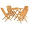 Ensemble à manger de jardin 5 pcs Bois de teck massifDétendez-vous et profitez d'un thé et de repas agréables avec votre famille et vos amis grâce à cet ensemble de salle à manger de jardin en bois classique ! Bois de teck massif : l'ensemble de salle à manger est fabriqué en bois de teck massif. Le bois de teck massif est un matériau naturel magnifique. Il a été chevronné, séché au four, puis sablé finement pour lui donner une apparence très lisse. Le bois de teck est connu pour sa résistance exceptionnelle et sa résistance aux intempéries.Fonction pliable : l'ensemble de salle à manger d'extérieur peut être plié pour économiser de l'espace lorsqu'il n'est pas utilisé.Expérience confortable : le dossier de la chaise de jardin vous offre un excellent soutien, offrant une expérience confortable optimale.Dessus de table robuste : le dessus de table robuste de la table à manger est parfait pour placer des repas, des boissons, des vases, des bols de fruits ou d'autres objets décoratifs.Trou pour parasol : le dessus de table est doté d'un trou pour parasol, ce qui vous permet de fixer facilement un parasol pour créer un coin ombragé.Design à lattes : la chaise à manger d'extérieur conçue avec un design à lattes est simple et intemporelle. Remarque :Pour que vos meubles d'extérieur restent beaux, nous vous recommandons de les protéger avec une housse imperméable. Maximum 110 kg par siège.