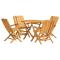 Ensemble à manger de jardin 5 pcs Bois de teck massifDétendez-vous et profitez d'un thé et de repas agréables avec votre famille et vos amis grâce à cet ensemble de salle à manger de jardin en bois classique ! Bois de teck massif : l'ensemble de salle à manger est fabriqué en bois de teck massif. Le bois de teck massif est un matériau naturel magnifique. Il a été chevronné, séché au four, puis sablé finement pour lui donner une apparence très lisse. Le bois de teck est connu pour sa résistance exceptionnelle et sa résistance aux intempéries. Fonction pliable : l'ensemble de salle à manger d'extérieur peut être plié pour économiser de l'espace lorsqu'il n'est pas utilisé. Expérience confortable : le dossier de la chaise de jardin vous offre un excellent soutien, offrant une expérience confortable optimale. Dessus de table robuste : le dessus de table robuste de la table à manger est parfait pour placer des repas, des boissons, des vases, des bols de fruits ou d'autres objets décoratifs. Trou pour parasol : le dessus de table est doté d'un trou pour parasol, ce qui vous permet de fixer facilement un parasol pour créer un coin ombragé. Design à lattes : la chaise à manger d'extérieur conçue avec un design à lattes est simple et intemporelle. Remarque : Pour que vos meubles d'extérieur restent beaux, nous vous recommandons de les protéger avec une housse imperméable. Maximum 110 kg par siège.
