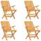 Ensemble à manger de jardin 5 pcs Bois de teck massifDétendez-vous et profitez d'un thé et de repas agréables avec votre famille et vos amis grâce à cet ensemble de salle à manger de jardin en bois classique ! Bois de teck massif : l'ensemble de salle à manger est fabriqué en bois de teck massif. Le bois de teck massif est un matériau naturel magnifique. Il a été chevronné, séché au four, puis sablé finement pour lui donner une apparence très lisse. Le bois de teck est connu pour sa résistance exceptionnelle et sa résistance aux intempéries. Fonction pliable : l'ensemble de salle à manger d'extérieur peut être plié pour économiser de l'espace lorsqu'il n'est pas utilisé. Expérience confortable : le dossier de la chaise de jardin vous offre un excellent soutien, offrant une expérience confortable optimale. Dessus de table robuste : le dessus de table robuste de la table à manger est parfait pour placer des repas, des boissons, des vases, des bols de fruits ou d'autres objets décoratifs. Trou pour parasol : le dessus de table est doté d'un trou pour parasol, ce qui vous permet de fixer facilement un parasol pour créer un coin ombragé. Design à lattes : la chaise à manger d'extérieur conçue avec un design à lattes est simple et intemporelle. Remarque : Pour que vos meubles d'extérieur restent beaux, nous vous recommandons de les protéger avec une housse imperméable. Maximum 110 kg par siège.