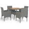 Ensemble à manger de jardin 5 pcs Gris Résine tressée et acaciaProfitez des réunions en toute simplicité avec notre salon de jardin de 5 pièces ! Cet ensemble de salle à manger peut sans effort répondre aux besoins de vos invités tout en créant un cadre de restauration en plein air parfait ! Cet ensemble de salle à manger est fait d'un cadre en acier renforcé recouvert d'une élégante résine tressée tissée à la main résistante aux intempéries, qui assure le soutien fort et peut être utilisé toute l'année. Le dessus de table est fabriqué en bois d'acacia massif de qualité, un bois dur tropical, résistant aux intempéries et durable. L'artisanat et les beaux grains de bois rendent chaque meuble unique et légèrement différent l'un de l'autre. Chaque siège est livré avec un coussin amovible bien rembourré pour plus de confort et de soutien pendant votre temps de détente. Toutes les housses de coussin sont amovibles avec un design à fermeture éclair. De plus, la construction légère rend chaque pièce facile à déplacer, à réorganiser et à transporter. Remarque : nous vous recommandons de couvrir l'ensemble pendant la pluie, la neige et le gel. Maximum 110 kg par siège. Soyez conscient du risque de feux ouverts et d'autres sources de forte chaleur à proximité du produit.