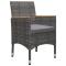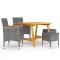 Ensemble à manger de jardin 5 pcs GrisCréez une esthétique convaincante et uniforme dans votre espace extérieur avec cet ensemble de salle à manger de jardin ! La table de salle à manger est en bois d'acacia massif avec une finition à l'huile, ce qui la rend stable, durable et facile à entretenir. Dotés d'un cadre en acier enduit de poudre recouvert de résine tressée résistante aux intempéries, ces chaises et tabourets sont robustes et faciles à nettoyer. Conçue avec un dossier et des accoudoirs incurvés, la chaise à dîner a une forme plus ergonomique pour un confort maximal. De plus, les accoudoirs sont joliment décorés avec du bois d'acacia massif, ce qui apporte une touche de charme rustique. Chaque siège est doté d'un coussin rembourré amovible pour ajouter du confort pendant votre temps de détente. Remarque importante : Nous vous recommandons de couvrir l'ensemble de salle à manger pendant la pluie, la neige et le gel pour une utilisation durable. Maximum 110 kg par siège. Soyez conscient du risque de feu ouvert et d'autres sources de forte chaleur à proximité de l'appareil.