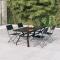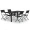 Ensemble à manger de jardin 5 pcs Gris et noirCet ensemble de salle à manger de jardin, au design élégant, est un excellent choix pour dîner ou vous détendre sur votre patio ou dans votre jardin. Cadre robuste : la table et les chaises, dotées d'une structure en acier enduit de poudre, sont durables et stables.Matériau durable : grâce au tissu textilène résistant à l'eau et respirant, les chaises de jardin sont résistantes à l'usure, faciles à entretenir et convient à un usage quotidien à l'extérieur.Design pliable : les chaises de salle à manger peuvent être pliées pour économiser de l'espace lorsqu'elles ne sont pas utilisées.Pieds de table élégants : les pieds de la table de patio sont élégamment fabriqués, avec des détails dynamiques courbés et assurant sa solidité et sa beauté. C'est pourquoi il s'agit d'une pièce remarquable pour votre extérieur.Dessus pratique et facile à nettoyer : le dessus de table en verre lisse est facile à nettoyer à l'aide d'un chiffon humide et est parfait pour placer des repas, des boissons et d'autres objets décoratifs. Remarque :Afin de prolonger la durée de vie de votre mobilier d'extérieur, nous vous recommandons de le protéger avec une housse imperméable. Maximum 110 kg par siège.