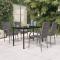 Ensemble à manger de jardin 5 pcs Gris et noirCet ensemble de salle à manger de jardin est un excellent choix pour manger ou vous détendre dans l'espace extérieur ! Les cadres en acier enduit de poudre rendent la table et les chaises robustes et stables pour une utilisation quotidienne à l'extérieur. Grâce à la résine tressée résistante à l'eau, les chaises sont faciles à nettoyer et conviennent à un usage quotidien. Le dessus de table en verre lisse est facile à nettoyer avec un chiffon humide et parfait pour placer les repas, les boissons et autres articles décoratifs. Remarque : afin de prolonger la durée de vie des meubles d'extérieur, nous vous recommandons de les protéger avec une housse imperméable. Maximum 110 kg par siège.