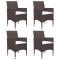 Ensemble à manger de jardin 5 pcs MarronCréez une esthétique convaincante et uniforme dans votre espace extérieur avec cet ensemble de salle à manger de jardin ! La table de salle à manger est en bois d'acacia massif avec une finition à l'huile, ce qui la rend stable, durable et facile à entretenir. Dotées d'un cadre en acier enduit de poudre recouvert de résine tressée résistante aux intempéries, ces chaises sont robustes et faciles à nettoyer. Conçue avec un dossier et un accoudoir incurvés, la chaise à dîner a une forme plus ergonomique pour un confort maximal. Chaque siège est doté d'un coussin rembourré amovible pour ajouter du confort pendant votre temps de détente. Remarque importante : Nous vous recommandons de couvrir l'ensemble de salle à manger pendant la pluie, la neige et le gel pour une utilisation durable. Maximum 110 kg par siège. Soyez conscient du risque de feux ouverts et d'autres sources de forte chaleur à proximité du produit.
