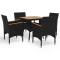 Ensemble à manger de jardin 5 pcs Noir Résine tressée et acaciaProfitez des réunions en toute simplicité avec notre salon de jardin de 5 pièces ! Cet ensemble de salle à manger peut sans effort répondre aux besoins de vos invités tout en créant un cadre de restauration en plein air parfait ! Cet ensemble de salle à manger est fait d'un cadre en acier renforcé recouvert d'une élégante résine tressée tissée à la main résistante aux intempéries, qui assure le soutien fort et peut être utilisé toute l'année. Le dessus de table et les accoudoirs sont en bois d'acacia massif de qualité, un bois dur tropical, résistant aux intempéries et durable. L'artisanat et les beaux grains de bois rendent chaque meuble unique et légèrement différent l'un de l'autre. Chaque siège est livré avec un coussin amovible bien rembourré pour plus de confort et de soutien pendant votre temps de détente. Toutes les housses de coussin sont amovibles avec un design à fermeture éclair. De plus, la construction légère rend chaque pièce facile à déplacer, à réorganiser et à transporter. Remarque : nous vous recommandons de couvrir l'ensemble pendant la pluie, la neige et le gel. Maximum 110 kg par siège. Soyez conscient du risque de feux ouverts et d'autres sources de forte chaleur à proximité du produit. ,