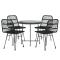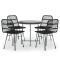 Ensemble à manger de jardin 5 pcs Noir Résine tresséeCréez une esthétique convaincante et uniforme dans votre espace extérieur avec cet ensemble de salle à manger de jardin ! Matériau durable : la résine tressée, également connue sous le nom de rotin poly, résiste aux intempéries et est facile à nettoyer. Elle reste belle à l'extérieur pendant une longue période. Elle offre une excellente qualité, commodité et un aspect esthétique.Cadre robuste et stable : les cadres en acier rendent l'ensemble de terrasse robuste et stable pour une utilisation quotidienne à l'extérieur.Dessus de table pratique : le dessus lisse de la table de salle à manger est en verre trempé, facile à nettoyer avec un chiffon humide. De plus, le dessus robuste est parfait pour placer des repas, des boissons et d'autres objets décoratifs.Assise confortable : la chaise de salle à manger est conçue avec un dossier pour vous offrir une expérience d'assise confortable.Bouchons de pieds pratiques : l'ensemble de bistro est livré avec des bouchons de pieds qui l'aident à se tenir plus fermement au sol. Remarque :Afin de prolonger la durée de vie de votre mobilier d'extérieur, nous vous recommandons de le protéger avec une housse imperméable.Chaque produit est livré avec un manuel de montage dans la boîte pour un montage facile. Maximum 110 kg par siège.