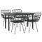 Ensemble à manger de jardin 5 pcs Noir Résine tresséeCréez une esthétique convaincante et uniforme dans votre espace extérieur avec cet ensemble de salle à manger de jardin ! Matériau durable : la résine tressée, également connue sous le nom de rotin poly, résiste aux intempéries et est facile à nettoyer. Elle reste belle à l'extérieur pendant une longue période. Elle offre une excellente qualité, commodité et un aspect esthétique. Cadre robuste et stable : les cadres en acier rendent l'ensemble de terrasse robuste et stable pour une utilisation quotidienne à l'extérieur. Dessus de table pratique : le dessus lisse de la table de salle à manger est en verre trempé, facile à nettoyer avec un chiffon humide. De plus, le dessus robuste est parfait pour placer des repas, des boissons et d'autres objets décoratifs. Assise confortable : la chaise de salle à manger est conçue avec un dossier et des accoudoirs pour vous offrir une expérience d'assise confortable. Bouchons de pieds pratiques : l'ensemble de bistro est livré avec des bouchons de pieds qui l'aident à se tenir plus fermement au sol. Remarque : Afin de prolonger la durée de vie de votre mobilier d'extérieur, nous vous recommandons de le protéger avec une housse imperméable. Chaque produit est livré avec un manuel de montage dans la boîte pour un montage facile. Maximum 110 kg par siège.