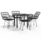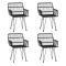 Ensemble à manger de jardin 5 pcs Noir Résine tresséeCréez une esthétique convaincante et uniforme dans votre espace extérieur avec cet ensemble de salle à manger de jardin ! Matériau durable : la résine tressée, également connue sous le nom de rotin poly, résiste aux intempéries et est facile à nettoyer. Elle reste belle à l'extérieur pendant une longue période. Elle offre une excellente qualité, commodité et un aspect esthétique. Cadre robuste et stable : les cadres en acier rendent l'ensemble de terrasse robuste et stable pour une utilisation quotidienne à l'extérieur. Dessus de table pratique : le dessus lisse de la table de salle à manger est en verre trempé, facile à nettoyer avec un chiffon humide. De plus, le dessus robuste est parfait pour placer des repas, des boissons et d'autres objets décoratifs. Assise confortable : la chaise de salle à manger est conçue avec un dossier et des accoudoirs pour vous offrir une expérience d'assise confortable. Bouchons de pieds pratiques : l'ensemble de bistro est livré avec des bouchons de pieds qui l'aident à se tenir plus fermement au sol. Remarque : Afin de prolonger la durée de vie de votre mobilier d'extérieur, nous vous recommandons de le protéger avec une housse imperméable. Chaque produit est livré avec un manuel de montage dans la boîte pour un montage facile. Maximum 110 kg par siège.