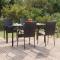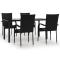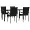 Ensemble à manger de jardin 5 pcs Noir Résine tresséeCet ensemble de salle à manger de jardin est un excellent choix pour manger ou vous détendre dans l'espace extérieur ! Matériau durable : la résine tressée, également connue sous le nom de rotin poly, résiste aux intempéries et est facile à nettoyer. Elle reste belle à l'extérieur pendant une longue période. Elle offre une excellente qualité, commodité et un aspect esthétique. Cadre robuste : les cadres en acier enduit de poudre rendent l'ensemble de salle à manger d'extérieur robuste et stable pour une utilisation quotidienne à l'extérieur. Dessus de table pratique : le dessus lisse de la table de salle à manger est en verre trempé, facile à nettoyer avec un chiffon humide. De plus, le dessus robuste est parfait pour placer des repas, des boissons et d'autres objets décoratifs. Conception flexible : grâce à leur construction légère, ces chaises d'extérieur sont faciles à déplacer et peuvent être empilées pour économiser de l'espace lorsqu'elles ne sont pas utilisées. Remarque : Afin de prolonger la durée de vie de votre mobilier d'extérieur, nous vous recommandons de le protéger avec une housse imperméable. Chaque produit est livré avec un manuel de montage dans la boîte pour un montage facile. Maximum 110 kg par siège.