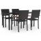Ensemble à manger de jardin 5 pcs Noir Résine tresséeCet élégant ensemble de salle à manger de jardin est destiné à être le point de mire de votre jardin ou patio ! C'est un excellent choix pour les repas en plein air ou pour vous détendre dans l'espace extérieur ! Matériau durable : la résine tressée, également connue sous le nom de rotin poly, résiste aux intempéries et est facile à nettoyer. Elle reste belle à l'extérieur pendant une longue période. Elle offre une excellente qualité, commodité et un aspect esthétique. Cadre robuste et stable : les cadres en acier enduit de poudre rendent l'ensemble de terrasse robuste et stable pour une utilisation quotidienne à l'extérieur. Dessus de table pratique : le dessus lisse de la table de salle à manger est en verre trempé, facile à nettoyer avec un chiffon humide. De plus, le dessus robuste est parfait pour placer des repas, des boissons et d'autres objets décoratifs. Assise confortable : la chaise de salle à manger est conçue avec un dossier et des accoudoirs pour vous offrir une expérience d'assise confortable. Remarque : Afin de prolonger la durée de vie de votre mobilier d'extérieur, nous vous recommandons de le protéger avec une housse imperméable. Chaque produit est livré avec un manuel de montage dans la boîte pour un montage facile.