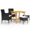 Ensemble à manger de jardin 5 pcs NoirCréez une esthétique convaincante et uniforme dans votre espace extérieur avec cet ensemble de salle à manger de jardin ! La table de salle à manger est en bois d'acacia massif avec une finition à l'huile, ce qui la rend stable, durable et facile à entretenir. Dotés d'un cadre en acier enduit de poudre recouvert de résine tressée résistante aux intempéries, ces chaises et tabourets sont robustes et faciles à nettoyer. Conçue avec un dossier et des accoudoirs incurvés, la chaise à dîner a une forme plus ergonomique pour un confort maximal. Chaque siège est doté d'un coussin rembourré amovible pour ajouter du confort pendant votre temps de détente. Remarque importante : Nous vous recommandons de couvrir l'ensemble de salle à manger pendant la pluie, la neige et le gel pour une utilisation durable. Maximum 110 kg par siège. Soyez conscient du risque de feu ouvert et d'autres sources de forte chaleur à proximité de l'appareil.