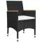Ensemble à manger de jardin 5 pcs NoirCréez une esthétique convaincante et uniforme dans votre espace extérieur avec cet ensemble de salle à manger de jardin ! La table de salle à manger est en bois d'acacia massif avec une finition à l'huile, ce qui la rend stable, durable et facile à entretenir. Dotés d'un cadre en acier enduit de poudre recouvert de résine tressée résistante aux intempéries, ces chaises et tabourets sont robustes et faciles à nettoyer. La chaise d'extérieur, conçue avec un dossier et des accoudoirs incurvés, présente une forme plus ergonomique pour un confort maximal. Les accoudoirs sont joliment décorés avec du bois d'acacia massif, ce qui apporte une touche de charme rustique. Chaque siège est doté d'un coussin rembourré amovible pour ajouter du confort pendant votre temps de détente. Remarque importante : Nous vous recommandons de couvrir l'ensemble de salle à manger pendant la pluie, la neige et le gel pour une utilisation durable. Maximum 110 kg par siège. Soyez conscient du risque de feu ouvert et d'autres sources de forte chaleur à proximité de l'appareil.