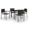 Ensemble à manger de jardin 5 pcs NoirCet élégant ensemble de salle à manger de jardin est destiné à être le point de mire de votre jardin ou patio ! C'est un excellent choix pour les repas en plein air ou pour vous détendre dans l'espace extérieur ! Les cadres en acier enduit de poudre rendent la table et les chaises robustes et stables pour une utilisation quotidienne en extérieur. Grâce à la résine tressée résistante à l'eau, les chaises sont faciles à nettoyer et résistantes à l'usure. Le dessus de table en verre lisse est facile à nettoyer avec un chiffon humide et parfait pour placer les repas, les boissons et autres articles décoratifs. Remarque : afin de prolonger la durée de vie des meubles d'extérieur, nous vous recommandons de les protéger avec une housse imperméable.