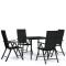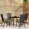 Ensemble à manger de jardin 5 pcs NoirCréez une esthétique convaincante et uniforme dans votre espace extérieur avec cet ensemble de salle à manger de jardin ! Cette table de salle à manger de jardin est faite de cadre en acier enduit de poudre, ce qui la rend robuste et stable pour une utilisation quotidienne à l'extérieur. Le dessus de table en verre lisse est facile à nettoyer avec un chiffon humide et est parfait pour placer des repas, des boissons et d'autres objets décoratifs. Les chaises de patio sont en résine tressée, ce qui les rend légères et résistantes à l'eau. De plus, les dossiers des chaises sont inclinables sur 7 niveaux, ce qui vous permet de toujours trouver la position la plus confortable. Les chaises peuvent être pliées pour gagner de la place lorsqu'elles ne sont pas utilisées. Remarque : nous vous recommandons de couvrir le mobilier pendant la pluie, la neige ou le gel. Remarque : afin de prolonger la durée de vie des meubles d'extérieur, nous vous recommandons de les protéger avec une housse imperméable. Maximum 110 kg par siège.