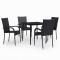 Ensemble à manger de jardin 5 pcs NoirCet ensemble de salle à manger de jardin est un excellent choix pour manger ou vous détendre dans l'espace extérieur ! Les cadres en acier enduit de poudre rendent la table et les chaises robustes et stables pour une utilisation quotidienne à l'extérieur. Grâce à la résine tressée résistante à l'eau, les chaises sont faciles à nettoyer et conviennent à un usage quotidien. Le dessus de table en verre lisse est facile à nettoyer avec un chiffon humide et parfait pour placer les repas, les boissons et autres articles décoratifs. Remarque : afin de prolonger la durée de vie des meubles d'extérieur, nous vous recommandons de les protéger avec une housse imperméable. Maximum 110 kg par siège.