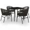 Ensemble à manger de jardin 5 pcs NoirCréez une esthétique convaincante et uniforme dans votre espace extérieur avec cet ensemble de salle à manger de jardin ! Cet ensemble de repas de jardin est fait de cadre en acier enduit de poudre, ce qui le rend robuste et stable pour une utilisation quotidienne à l'extérieur. Le dessus de table en verre lisse est facile à nettoyer avec un chiffon humide et est parfait pour placer des repas, des boissons et d'autres objets décoratifs. Les chaises de patio sont en rotin PVC, ce qui les rend durables et résistantes aux intempéries et aux rayons UV. De plus, chaque siège est livré avec un coussin bien rembourré amovible pour plus de confort pendant votre temps de détente. Remarque : afin de prolonger la durée de vie des meubles d'extérieur, nous vous recommandons de les protéger avec une housse imperméable.